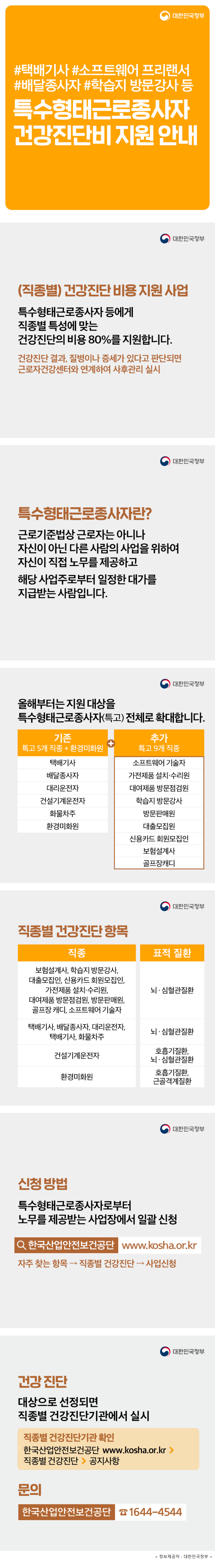 택배기사, 배달종사자, 학습지 방문강사 등 특수형태근로종사자 직종별 특성에 맞는